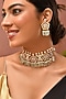 Featuring a gold finish choker necklace studded with green kundan polki, set in mixed metal. It is paired with a pair of earrings. Ideal for adding a regal touch to wedding celebrations, festive soirees or grand receptions.
