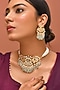 Featuring a gold finish choker necklace studded with green kundan polki, set in mixed metal. It is paired with a pair of earrings. Ideal for adding a regal touch to wedding celebrations, festive soirees or grand receptions.