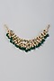 Featuring a pair of gold finish ear chains studded with green kundan polki, set in copper.