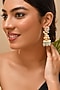 Featuring a pair of gold finish jhumka earrings studded with green kundan polki, set in mixed metal. Ideal for adding a regal touch to wedding celebrations, festive soirees or grand receptions.