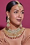 Featuring a gold finish necklace studded with kundan polki, set in copper. It is paired with a matching pair of earrings and a maangtikka.