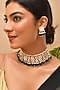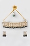 Featuring a gold finish necklace studded with green kundan polki, set in mixed metal. It is paired with a pair of earrings. Ideal for adding a regal touch to wedding celebrations, festive soirees or grand receptions.