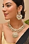 Featuring a gold finish necklace studded with green kundan polki, set in mixed metal. It is paired with a pair of earrings. Ideal for adding a regal touch to wedding celebrations, festive soirees or grand receptions.