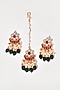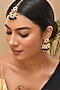 Featuring a pair of gold finish dangler earrings studded with multi-colored kundan polki, set in mixed metal. It is paired with a maangtikka. Ideal for adding a regal touch to wedding celebrations, festive soirees or grand receptions.