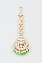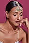 Featuring a gold finish maang tikka studded with kundan polki, set in copper.