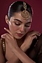 Featuring a gold finish maang tikka studded with kundan polki, set in copper. Perfect wear for a festive occasion or a wedding.