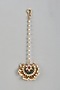 Featuring a gold finish maangtikka studded with kundan polki, set in copper. Perfect wear for festive occasions or wedding ceremonies.