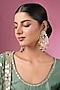 Featuring a pair of gold finish chandbali earrings studded with kundan polki and red stones, set in copper. Perfect choice for festive celebrations, wedding or sangeet ceremonies.