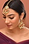 Featuring a pair of gold finish dangler earrings studded with multi-colored kundan polki, set in mixed metal. It is paired with a maangtikka. Ideal for adding a regal touch to wedding celebrations, festive soirees or grand receptions.