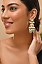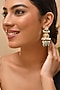 Featuring a pair of gold finish jhumka earrings studded with multi-colored kundan polki, set in mixed metal. Ideal for adding a regal touch to wedding celebrations, festive soirees or grand receptions.