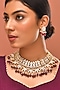 Featuring a gold finish necklace studded with red kundan polki, set in mixed metal. It is paired with a pair of earrings. Ideal for adding a regal touch to wedding celebrations, festive soirees or grand receptions.