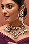 Featuring a gold finish necklace studded with red kundan polki, set in mixed metal. It is paired with a pair of earrings. Ideal for adding a regal touch to wedding celebrations, festive soirees or grand receptions.