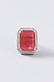 Featuring a white finish long necklace studded with kundan polki and red beads, set in mixed metal. It is paired with a matching pair of earrings and a ring.
