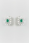 White Finish Zircon & Green Stone Stud Earrings