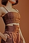 Brown Linen Satin Pleated Tube Top