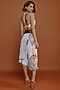 Featuring a multi-colored midi skirt in bemberg crepe base with slit and flap detailing. This contains only one piece.