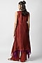 Featuring a red layered asymmetrical kurta in organza base with hand embroidery. It is paired with matching satin wide legged pants.