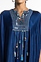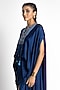 Featuring a sapphire poncho in satin base with hand embroidery. It is paired with a draped skirt. Accessorise with dangler earrings and heels.