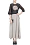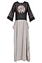 This set features an off white maxi dress in chanderi and cotton base with stripe print all over the front and back. It is paired with black top with birds and leaves embroidery on the centre front. The dress can be tightened at the waist.