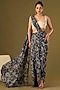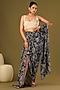 Black Viscose Crepe Paisley Printed Pre-Draped Saree Set