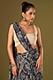 Featuring a black pre-draped saree in viscose crepe base with paisley print. It is paired with an ivory tissue silk blouse having back knot detailing. The timeless design of this saree will add a festive touch to any occasion.