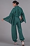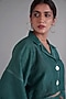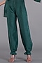 Featuring a midnight green button down crop top in viscose linen base. It is paired with matching jogger pants.