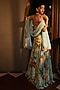 Featuring a powder blue lehenga in organza silk base with floral print and hand work. It is paired with a hand embroidered blouse and an embroidered dupatta. Accentuate it with block heels and statement earrings for sangeet ceremonies.