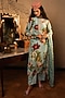 Featuring a powder blue kurta in viscose crepe base with hand embroidery and floral print. It is paired with cotton satin pants and an organza silk printed dupatta. Accentuate it with block heels and statement earrings for festive ceremonies.