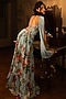 Featuring a powder blue lehenga in viscose crepe base with floral print. It is paired with a hand embroidered kurta and an organza silk dupatta. Accentuate it with block heels and statement earrings for sangeet ceremonies.