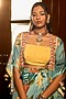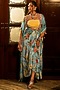 Featuring a sky blue draped skirt in viscose crepe base with tropical floral print. It is paired with a yellow bustier having sequins and beads hand embroidery, including an organza silk hand embroidered jacket. Accentuate it with block heels and statement earrings for evening soirees.