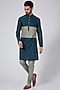 Featuring an ocean green kurta in cotton silk base with embroidery. It is paired with churidar pants. Perfect wear for festive occasions.