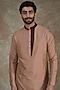 Featuring a peach kurta in cotton silk base with asymmetrical hemline and pleats detail. It is paired with churidar pants. Perfect wear for a festive occasion or sangeet ceremony, exuding traditional charm and elegance.