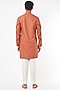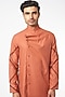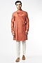 Featuring a princeton orange kurta in cotton linen base with a cowl collar. It is paired with white cotton silk pants. Perfect attire for festive occasion, exuding traditional charm and elegance.