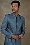 Prussian Blue Polyester Sequins Hand Embroidered Sherwani Set