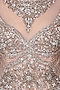 Featuring a powder pink flared gown in tulle base appliqued with siver crystal stones, swarovski and beads embellishment in paisley pattern all over the bodice, back and border. It has crystal embroidered kalidar panels all over the ghera. It has a powder pink dori tie with fabric ball and beads and pearl tasseled hangings at centre back.