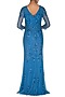 Featuring a metallic blue gown in tulle base with hand embroidery.