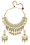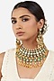 Featuring a gold finish layered necklace studded with kundan polki, shell pearls, yellow jade beads, and hydro polki, set in mixed metal. It is paired with a pair of matching earrings.