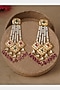 Featuring a pair of micro gold finish dangler earrings studded with kundan polki, pink semi precious beads, and white semi precious pearls, set in mixed metal.