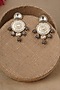 Featuring a pair of micro gold finish dangler earrings studded with kundan polki, grey drops, and white pearl beads, set in mixed metal.