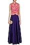 Pink Gota Patti Embroidered Jacket with Blue Lehenga Skirt