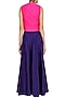 Featuring a pink short jacket in silk embroidered with zari, pearl and gota patti work and has rounded edges. It comes along with blue lehenga skirt in silk.