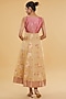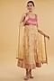 Featuring a beige anarkali in cotton banarasi base with floral print and boota embroidery. It is paired with pants and a dupatta. Accentuate it with statement jewellery and heels for a festive occasion or pooja ceremony.