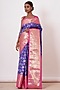 Featuring a bright blue handwoven saree in pure dharmavaram silk base with a pink zari embroidered border. It is paired with a fuchsia digitally printed blouse having floral motifs. Accentuate it with statement jewellery and heels for weddings or festive occasions.