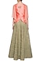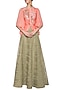 Candy pink embroidered jacket with green skirt