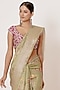 Featuring a dusty green handwoven saree in pure banarasi silk base with digital print and zari embroidery. It is paired with a magenta blouse. Accentuate with statement jewellery and heels for a festive occasion or wedding ceremony.