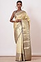 Featuring a gold and ivory handwoven saree in pure dharmavaram silk base with a grey zari embroidered border. It is paired with a blouse. Accentuate it with statement jewellery and heels for a wedding, sangeet or engagement ceremony.