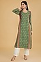 Green Cotton Silk Floral Motif Printed Kurta Set