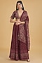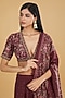Featuring a maroon lehenga in cotton silk base with floral print. It is paired with an embroidered blouse and a dupatta. Accentuate it with statement jewellery and heels for a wedding or engagement ceremony.