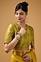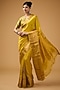 Featuring a mustard saree in silk base with gold border detail and motif embroidery. It is paired with a blouse. Accentuate it with statement jewellery and heels for a festive occasion.
