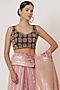 Featuring an onion pink handwoven saree in pure banarasi silk organza base with zari embroidery. It is paired with a contrasting black jacquard blouse having motifs work. Perfect wear for festive occasions or wedding ceremonies.